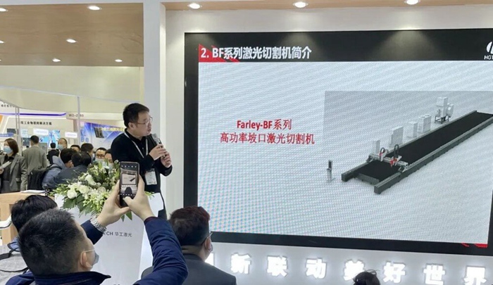 為讓與會(huì)者更直觀感受激光智造的奇妙體驗(yàn),華工激光帶來 交互式激光文創(chuàng)定制自動(dòng)化線 。