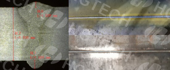 我司承接了某船廠的船板激光電弧復合焊工藝開發(fā)項目,針對船用5-10mm中厚板,通過大量工藝試驗與檢測分析,對各厚度船板進行激光復合焊接工藝研究,穩(wěn)定實現(xiàn)5-10mm船板拼焊單面焊雙面成形和T形焊縫雙面焊,工件焊前均無需開坡口,焊縫成形飽滿、美觀、均勻一致,無不良缺欠,焊接強度高,滿足船級社焊接質(zhì)量標準,獲取了船板中厚板激光電弧復合焊工藝規(guī)范和工藝數(shù)據(jù)庫。