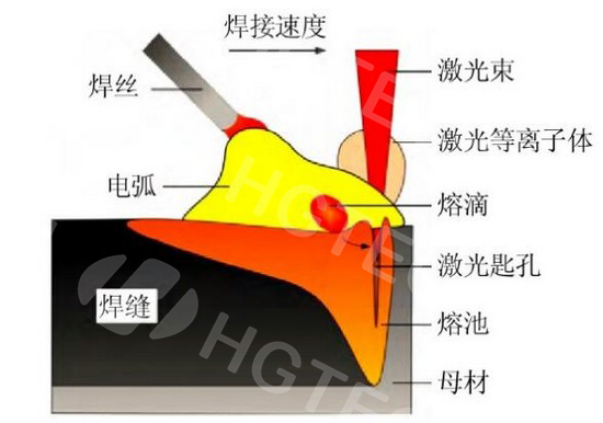 隨著激光技術的發(fā)展,激光焊接憑借其高效率、熱輸入小、變形小、高深寬比、無接觸等優(yōu)勢已開始在各行各業(yè)深入應用。但單激光焊接也存在一些不足之處。單激光焊接雖然可通過增加激光能量密度來提升焊接熔深,實現(xiàn)中厚板的焊接;但激光能量密度增大的同時會加劇母材的氣化和飛濺,導致焊縫表面成形變差,無法滿足船舶等行業(yè)的焊縫表觀質(zhì)量的要求。另外,單激光焊接是依靠激光能量熔化母材實現(xiàn)板材的連接,因此對工件的裝配間隙要求很高,間隙過大會導致焊接無法順利進行,而船舶制造用板因其板料長度幅面大,裝配中不可避免會存在較大的間隙,因此單激光焊接的方式在船舶制造中的應用受限。