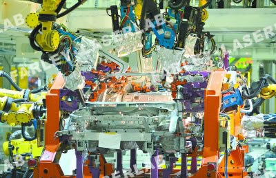 車身車間,機(jī)器人進(jìn)行總拼增焊工序