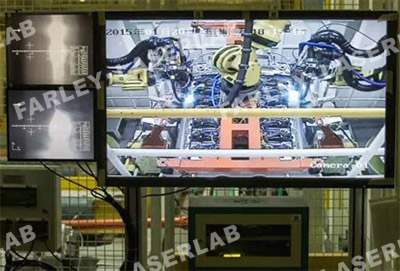 在車身車間,機(jī)器人正在進(jìn)行總拼增焊工序,該車間擁有452臺機(jī)器人,自動化率高達(dá)97%