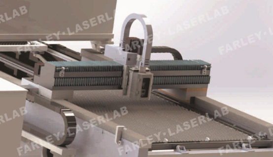 龍門式雙驅(qū)結(jié)構(gòu),切割區(qū)域完全封閉,并具有工作區(qū)域照明,橫梁雙邊驅(qū)動(dòng)結(jié)構(gòu)設(shè)計(jì)合理,具有高剛性、良好的穩(wěn)定性,控制精度高。