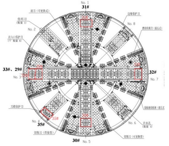 滾刀由刀體、刀圈、擋圈、端蓋、軸承五大部分組成,刀圈是加熱到100~200℃安裝到刀體上。在盾構(gòu)機(jī)施工硬巖或上軟下硬、上硬下軟等復(fù)合地層時(shí),中心滾刀在該類地層掘進(jìn)中磨損較快,而在上軟下硬地層中,滾刀偏磨現(xiàn)象比較常見(jiàn),因此,刀圈屬于極易磨損件,超過(guò)磨損量閾值后則需要進(jìn)行更換。而盾構(gòu)機(jī)開(kāi)倉(cāng)更換易損件屬于危大工程范疇,風(fēng)險(xiǎn)高、技術(shù)要求高以及工作強(qiáng)度大,同時(shí),也會(huì)大大提升生產(chǎn)周期及成本。因此,提高刀圈的使用壽命可大大減少更換次數(shù),降低人力、物力的消耗,節(jié)約成本,也進(jìn)一步保障生產(chǎn)安全及周期可控,在工程實(shí)踐中具有重要的意義。