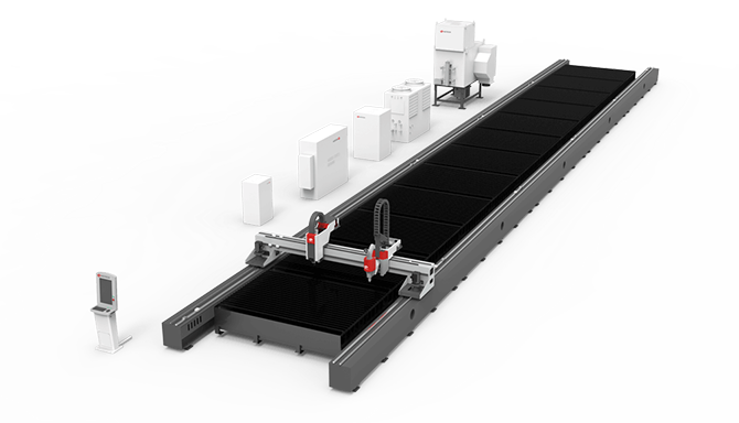 3. 大幅面高功率激光坡口切割智能裝備:該產(chǎn)品為核心部件全國(guó)產(chǎn)替代的金屬板材復(fù)合加工設(shè)備,可對(duì)鋁板、不銹鋼、碳鋼及有色金屬板材進(jìn)行切割加工,實(shí)現(xiàn)板材的平面垂直切割和多類(lèi)型坡口切割一次成型,具備自主研發(fā)坡口軟件拐角精確算法,搭載五軸聯(lián)動(dòng)技術(shù),實(shí)現(xiàn)坡口拐角切割,一刀成型。