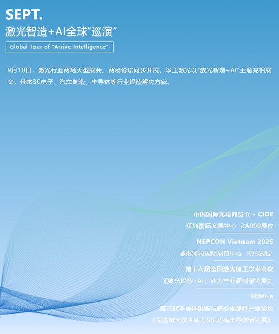 圍繞激光智造+AI,華工激光持續(xù)提升市場(chǎng)影響力與品牌聲量,通過(guò)全球展會(huì)、論壇展示領(lǐng)先的激光智造解決方案。