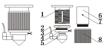 1.聚焦鏡內(nèi)筒2.進(jìn)氣管3.限位螺圈4.氣嘴過渡套5.氣嘴6.鏡筒7.限位螺絲8.調(diào)節(jié)套筒.