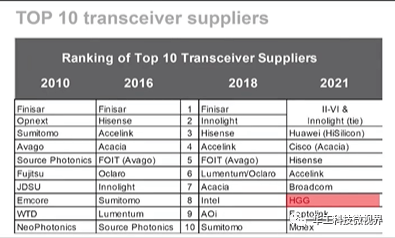 近日,光通信領(lǐng)域知名市場(chǎng)調(diào)研機(jī)構(gòu)Lightcounting發(fā)布2021全球十大光器件廠(chǎng)商TOP10榜單,華工科技核心子公司華工正源躍升全球榜單第8名,市場(chǎng)影響力進(jìn)一步提升。