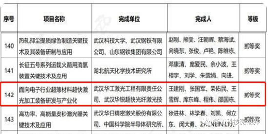 日前,湖北省“加快推進(jìn)武漢具有全國(guó)影響力的科技創(chuàng)新中心建設(shè)暨湖北省科技創(chuàng)新大會(huì)”在武漢召開(kāi),會(huì)上正式公布了2021年度湖北省科學(xué)技術(shù)獎(jiǎng)獲獎(jiǎng)名單。其中,由華工科技核心子公司華工激光參與完成的“面向電子行業(yè)超薄材料超快激光加工裝備研發(fā)與產(chǎn)業(yè)化”項(xiàng)目榮獲科學(xué)技術(shù)進(jìn)步獎(jiǎng)二等獎(jiǎng)。
