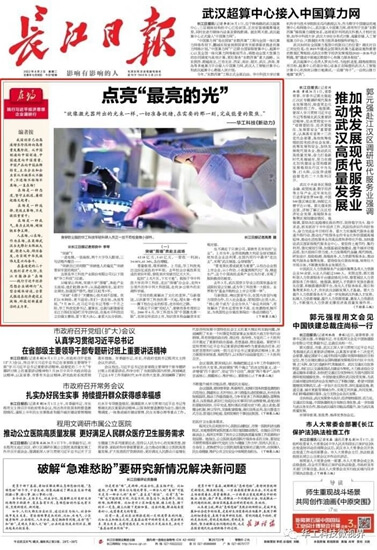 《長江日報(bào)》頭版頭條報(bào)道華工科技點(diǎn)亮“最亮的光”