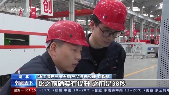 華工激光三維五軸產(chǎn)品線總經(jīng)理 劉程林:35秒切割完成,比之前確實有提升,之前是38秒。