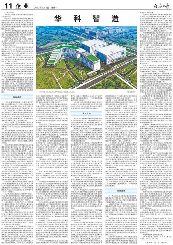 7月3日,《經(jīng)濟(jì)日報》以頭版頭條+整版報道形式刊發(fā)長篇通訊,全面深入地報道華工科技依靠持續(xù)創(chuàng)新,培育發(fā)展動能,加快實現(xiàn)高水平科技自立自強(qiáng)的創(chuàng)新發(fā)展之路。