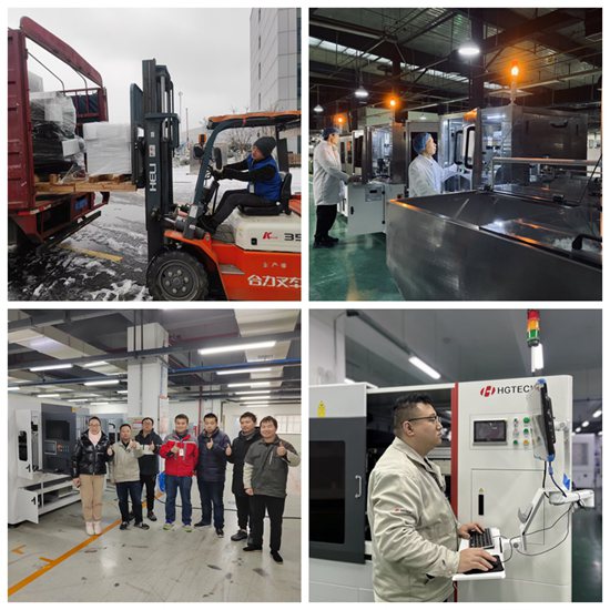 為滿足客戶緊急項(xiàng)目需求,華工激光半導(dǎo)體面板事業(yè)部協(xié)調(diào)工藝、生產(chǎn)、售后多個(gè)部門緊密生產(chǎn),節(jié)前順利完成了藍(lán)寶石激光加工智能裝備樣機(jī)的交付任務(wù)。為能在第一時(shí)間提供設(shè)備數(shù)據(jù)拿下該項(xiàng)目的千萬級批量訂單,售后及工藝工程師從大年初一到初三始終堅(jiān)守在客戶現(xiàn)場,完成設(shè)備的調(diào)試安裝工作。