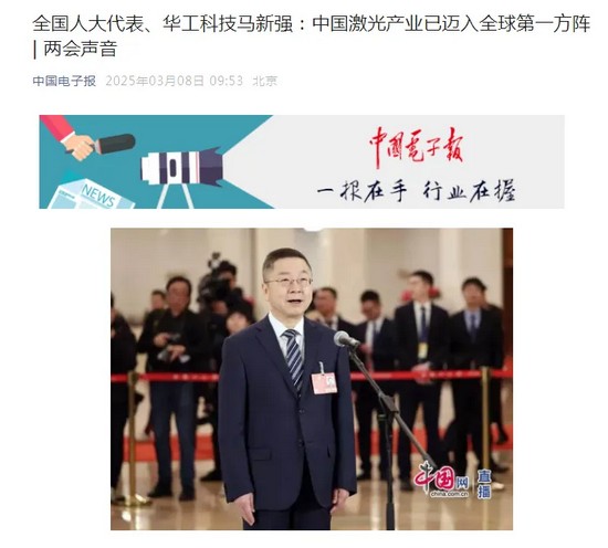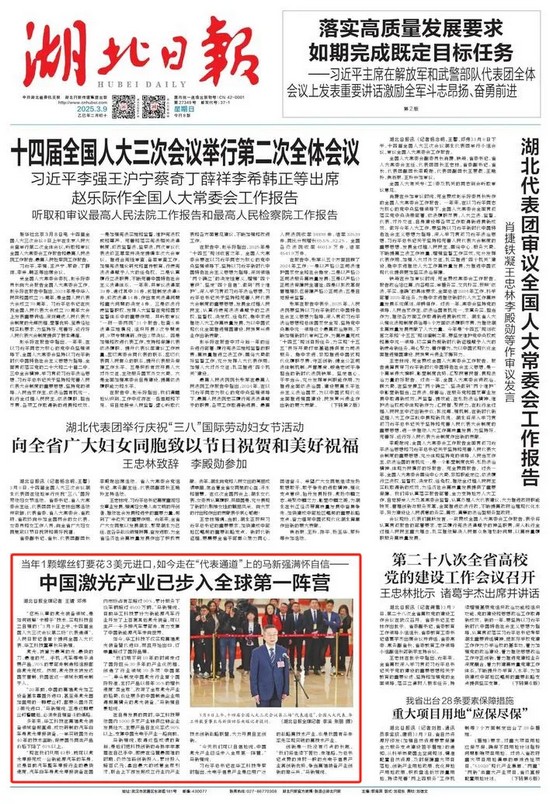 人民日?qǐng)?bào)(頭版)、新華社《新華每日電訊》、中央電視臺(tái)《新聞聯(lián)播》、科技日?qǐng)?bào)、工業(yè)和信息化部宣傳中心、中國(guó)電子報(bào)、中國(guó)工業(yè)報(bào)、中國(guó)證券報(bào)、上海證券報(bào)、證券時(shí)報(bào)、證券日?qǐng)?bào)、每日經(jīng)濟(jì)新聞、經(jīng)濟(jì)觀察報(bào)、第一財(cái)經(jīng)、支點(diǎn)財(cái)經(jīng)、湖北日?qǐng)?bào)(頭版)、長(zhǎng)江云新聞等多家媒體關(guān)注馬新強(qiáng)代表的履職情況及華工科技創(chuàng)新發(fā)展。