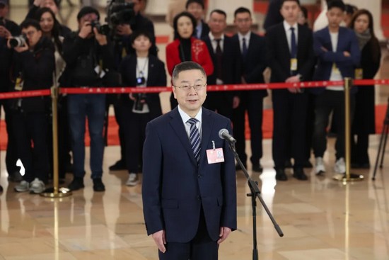 全國(guó)人大代表馬新強(qiáng)走上代表通道,與記者見(jiàn)面交流。