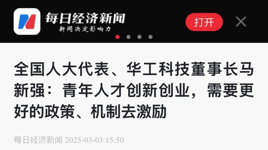 “青年人才的引進(jìn)和培養(yǎng)一直是我關(guān)注的重點(diǎn),青年人才的數(shù)量和質(zhì)量關(guān)乎科技創(chuàng)新的未來(lái)?!?月28日,全國(guó)人大代表,華工科技黨委書(shū)記、董事長(zhǎng)馬新強(qiáng)在接受《證券日?qǐng)?bào)》記者專訪時(shí)表示。他在2025年兩會(huì)期間將提交一份關(guān)于優(yōu)化政策、機(jī)制,激發(fā)青年人才創(chuàng)新創(chuàng)業(yè)動(dòng)能的建議。包括要完善分層分類的評(píng)價(jià)體系;系統(tǒng)優(yōu)化青年人才培養(yǎng)、支持計(jì)劃;加強(qiáng)青年人才培養(yǎng)、支持的區(qū)域競(jìng)爭(zhēng)和協(xié)同,促進(jìn)資源流動(dòng)。