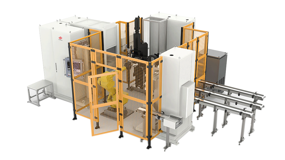 GW系列汽車傳動(dòng)件全自動(dòng)焊接生產(chǎn)線采用相同或不同材質(zhì),將兩種或兩種以上的齒輪類零件壓裝后采用激光焊接而成(送絲或不送絲),焊接完成的合成材料達(dá)到行業(yè)內(nèi)需要的強(qiáng)度要求、重量要求及特定的功能性要求。該焊接系統(tǒng)配備全自動(dòng)上、下料機(jī)械手、全自動(dòng)工件壓裝機(jī)構(gòu),激光清洗機(jī)構(gòu)、焊渣刷佛機(jī)構(gòu),成次品輸送料道等,可擴(kuò)展在線激光打標(biāo)、超聲波探傷、齒輪加熱系統(tǒng)等功能。配合光纖焊接頭、焊縫跟蹤及LWM激光檢測(cè)系統(tǒng),可實(shí)現(xiàn)低成本、高質(zhì)量、高產(chǎn)出的連續(xù)生產(chǎn)。主要加工汽車變速箱內(nèi)的中心軸回轉(zhuǎn)類零件的焊接總成,主要包含齒輪轂件、齒輪離合器件、中心軸齒轂總成、中心套齒轂總成、雙聯(lián)齒輪總成件、差速器總成件等變速箱內(nèi)的核心傳動(dòng)部件。