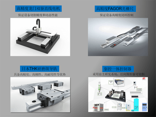 全閉環(huán)一體式控制,配備高精度的龍門雙驅(qū)直線電機、FAGOR光柵尺、日本THK研磨級導(dǎo)軌、驅(qū)控一體控制器等組件,構(gòu)建整套高精密傳控系統(tǒng),極大的提高了設(shè)備性能。
