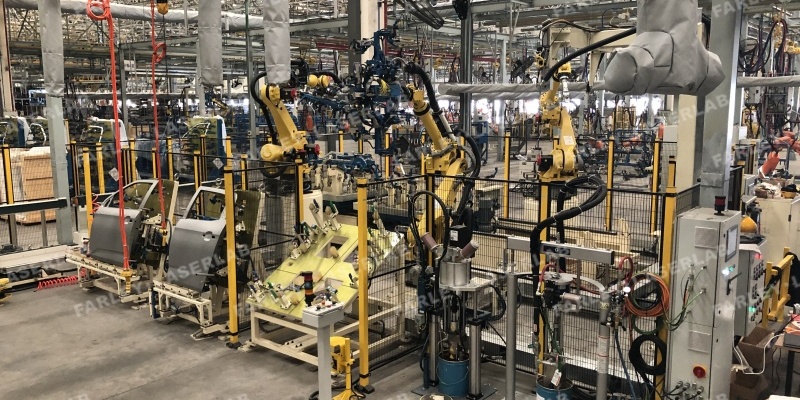 工藝:涉及點(diǎn)焊、涂膠、滾邊,并通過夾具庫的形式滿足多車型切換的功能。