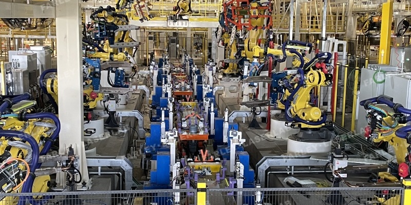 工藝:涉及點(diǎn)焊、涂膠等車身生產(chǎn)工藝,具備視覺(jué)引導(dǎo)自動(dòng)取件、視覺(jué)引導(dǎo)涂膠及膠型檢查等功能。