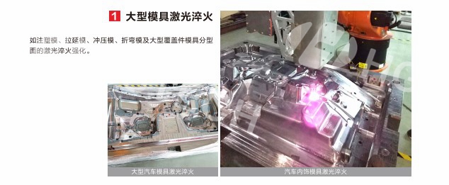如注塑模、拉延模、折彎模及大型覆蓋件模具分型面的激光淬火強(qiáng)化。